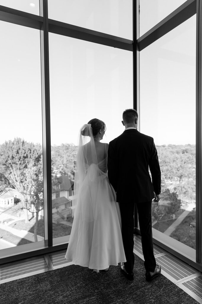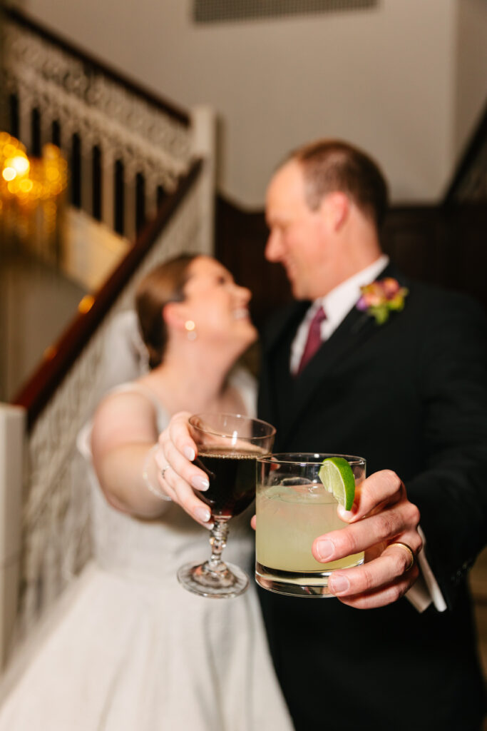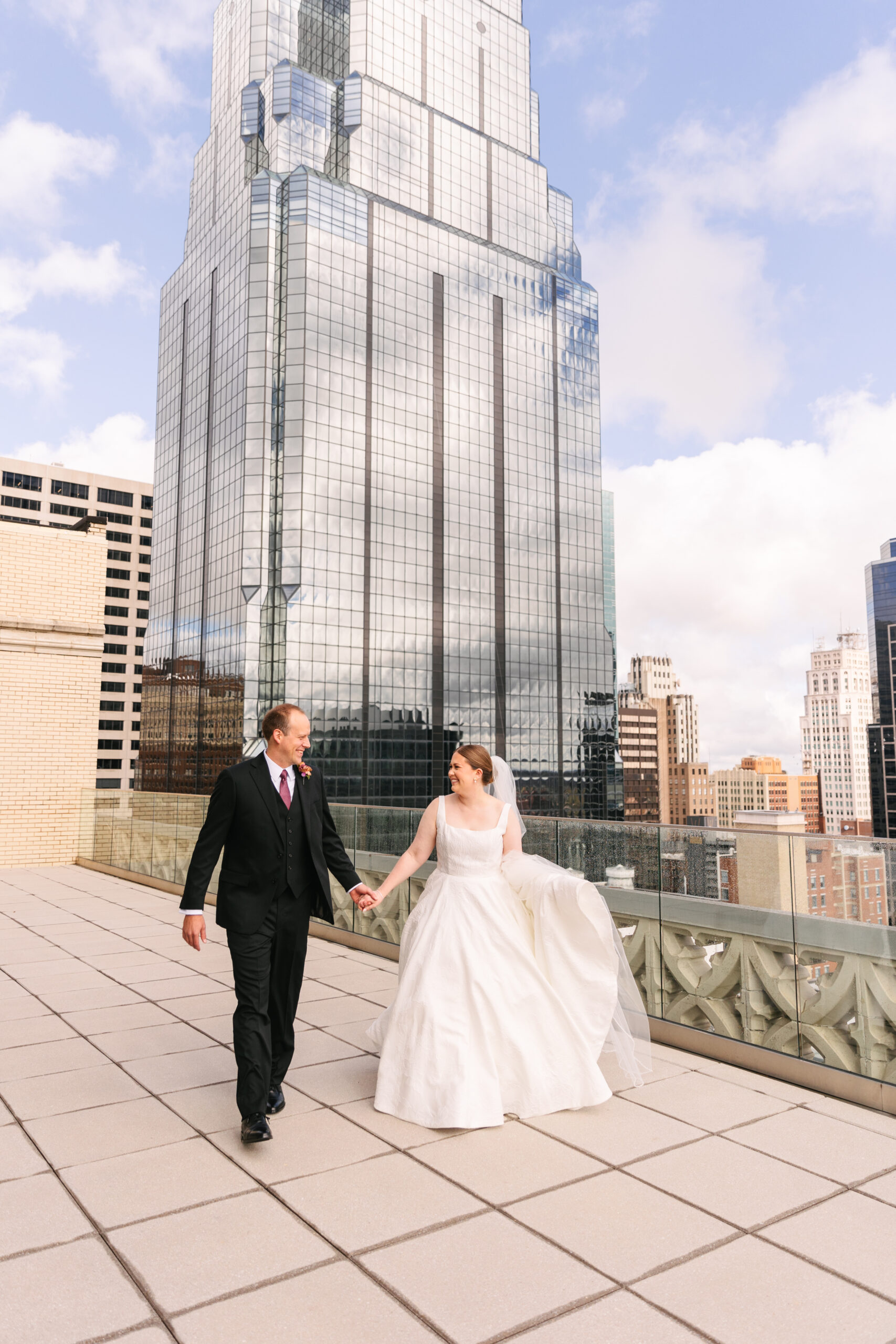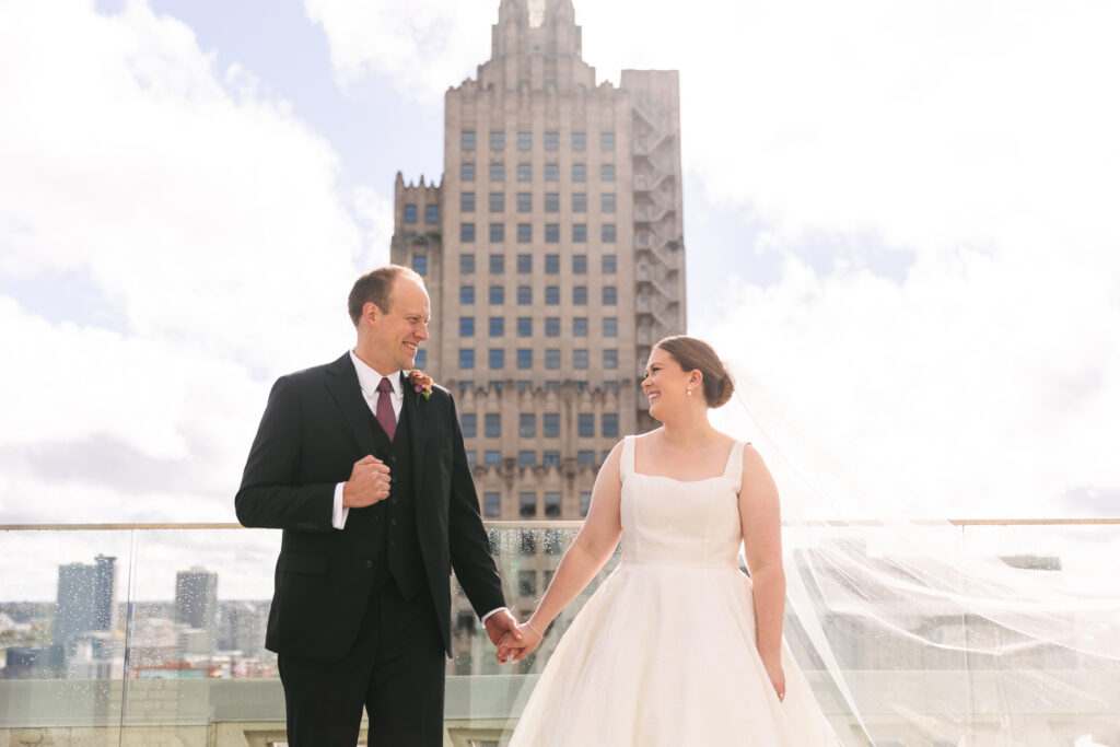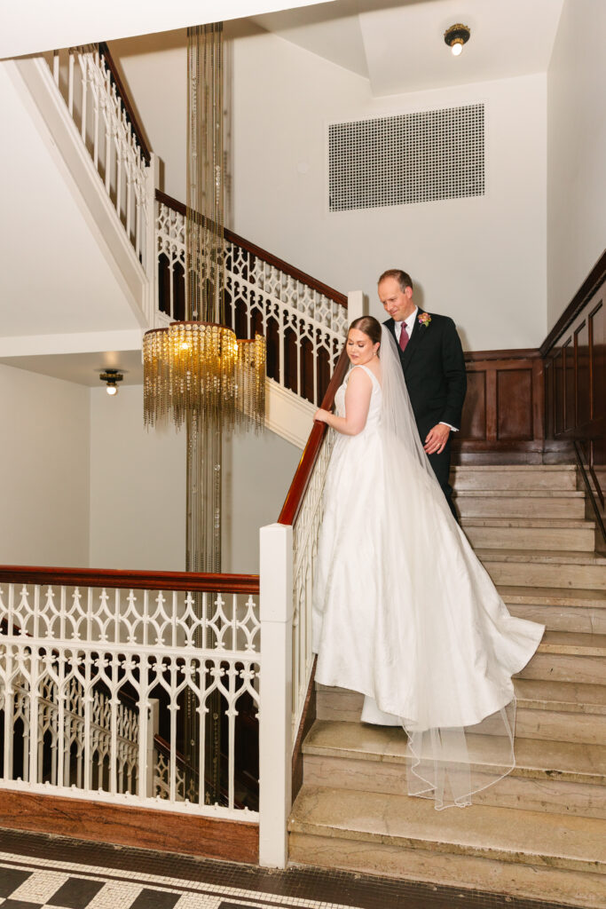 The Hotel Kansas City was the perfect fit for their classic style. They spent the morning in the king lofted suite, which gave them space to get ready and relax. The hotel team left a handwritten note and a bottle of sparkling rosé, which made the morning even sweeter.