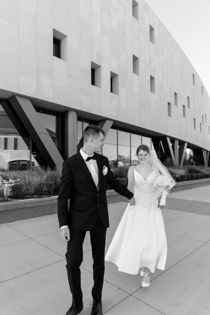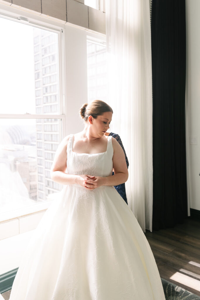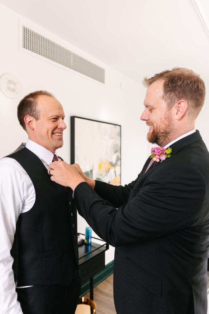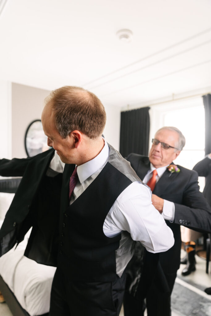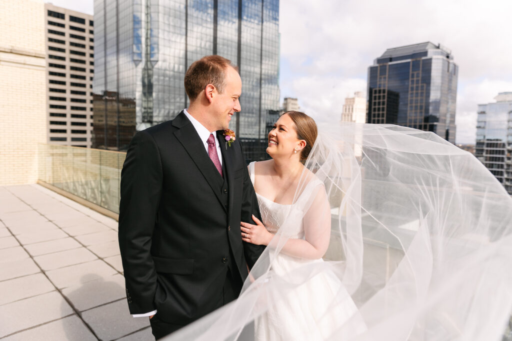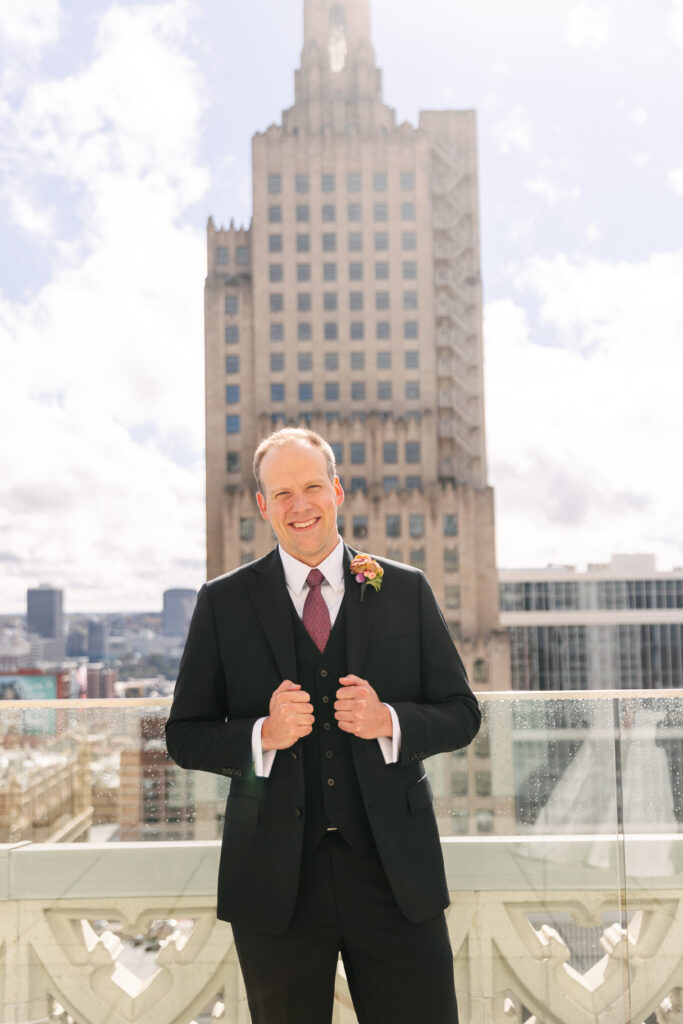 The Hotel Kansas City was the perfect fit for their classic style. They spent the morning in the king lofted suite, which gave them space to get ready and relax. The hotel team left a handwritten note and a bottle of sparkling rosé, which made the morning even sweeter.