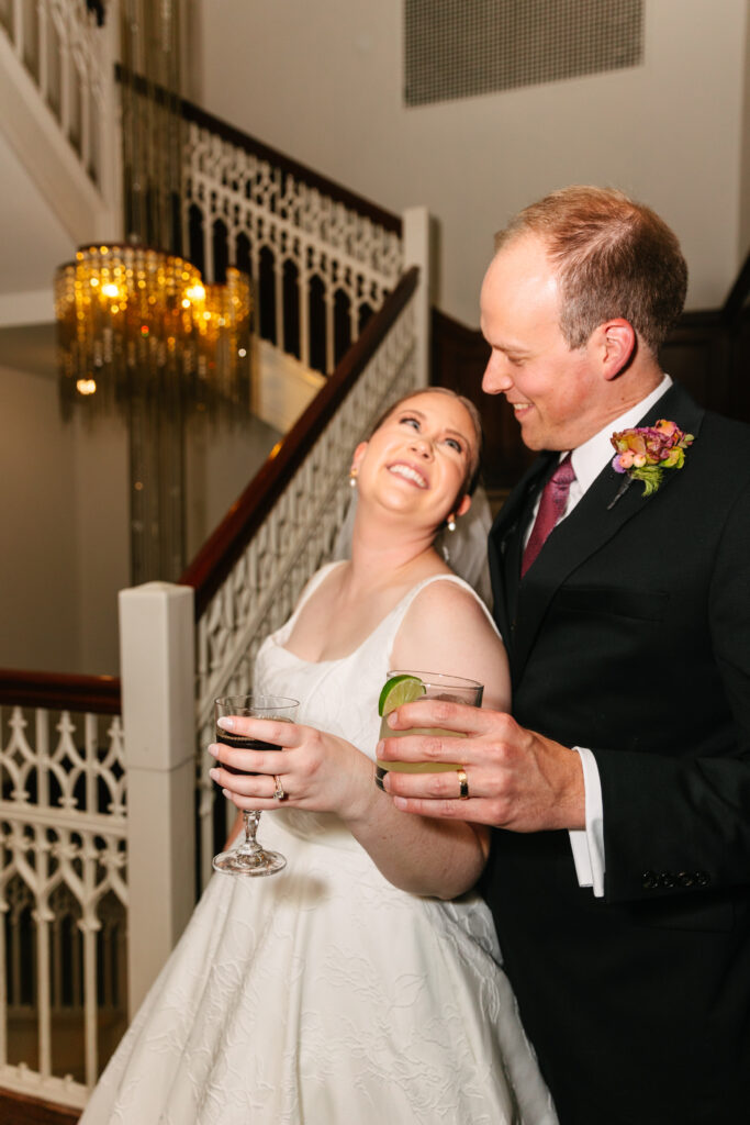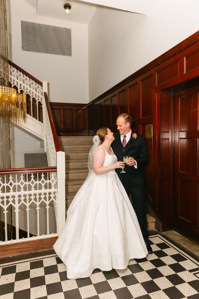 They also loved the balcony that overlooks the Tudor Ballroom. The rich wood details and stained glass around the venue added so much charm. Every room felt special and full of character.