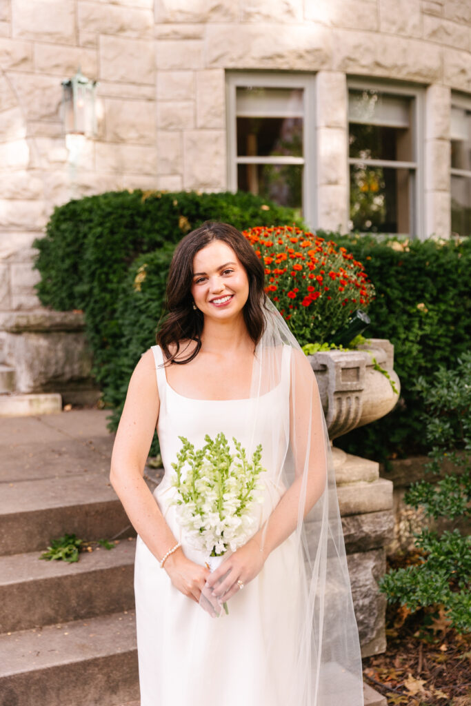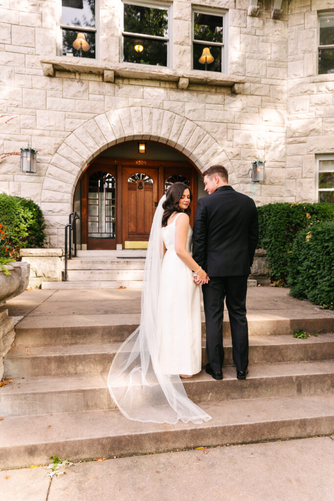 Simpson House is one of my favorite venues for so many reasons. It’s tucked right in the heart of Kansas City, yet it feels like a hidden gem. The historic stone exterior, lush gardens, and stately architecture make it a dream backdrop for portraits. On this warm August afternoon, the light filtered perfectly through the trees, wrapping everything in a golden glow.