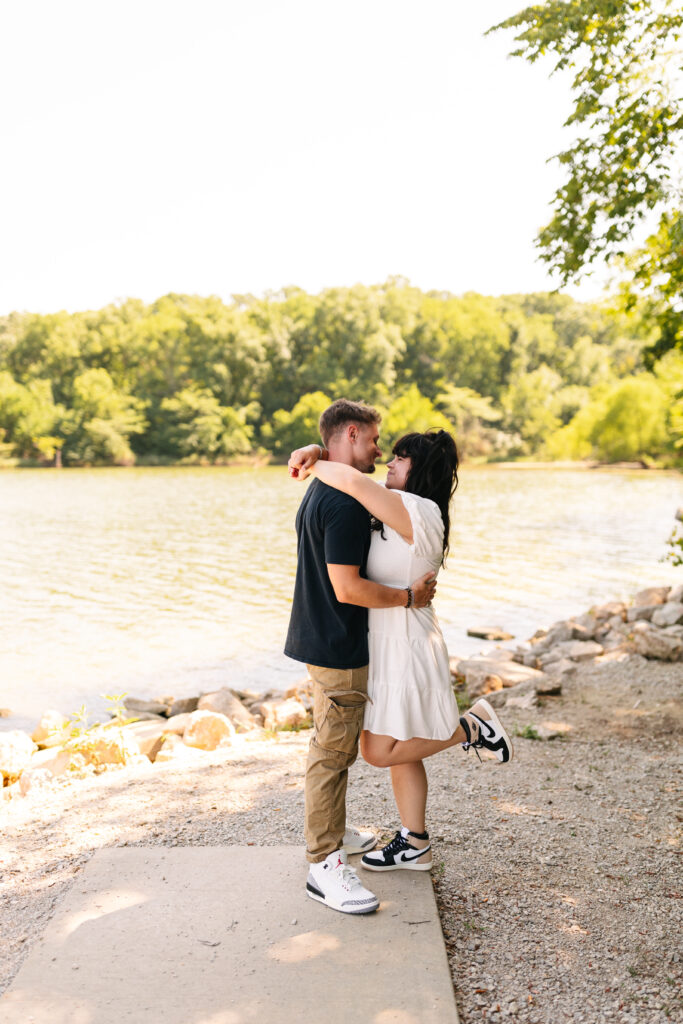 After the ceremony, we headed to Blue Springs Lake for newlywed portraits, and WOW—Missouri delivered the prettiest summer sunshine. The way these two melt into each other made photographing them so easy. Every pose turned into a candid moment. Every hug turned into laughter.