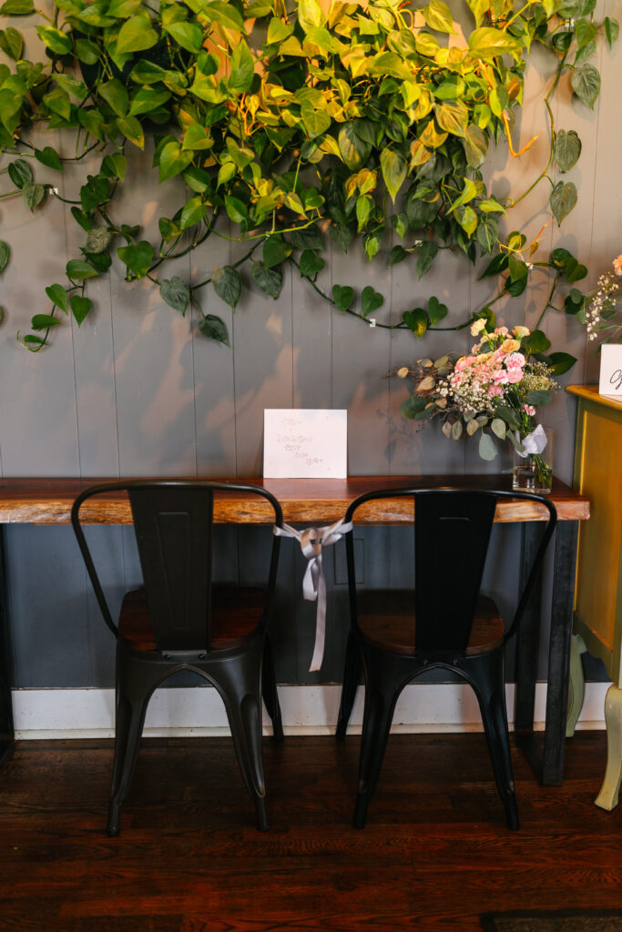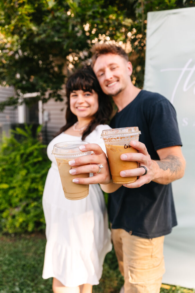 Most couples don’t think of a coffee shop reception… but let me tell you—Scout Coffee is a vibe. It was intimate and warm, full of personal touches and the best treats. Guests grabbed iced coffees, mini pastries, and sweet bites from the most adorable spread.