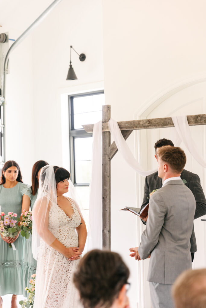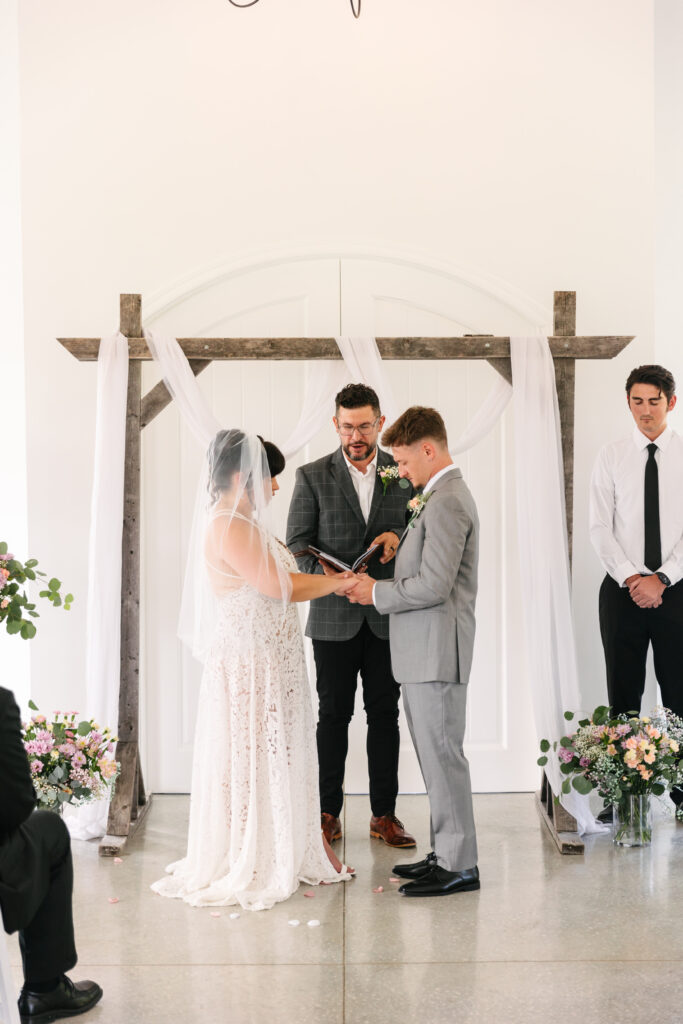 The Brimm is such a gem of a venue—bright, minimal, and designed to let meaningful moments shine. Danielle and Sam’s ceremony took place inside the stunning white chapel, where natural light poured through the windows and created the softest, dreamiest glow around them.