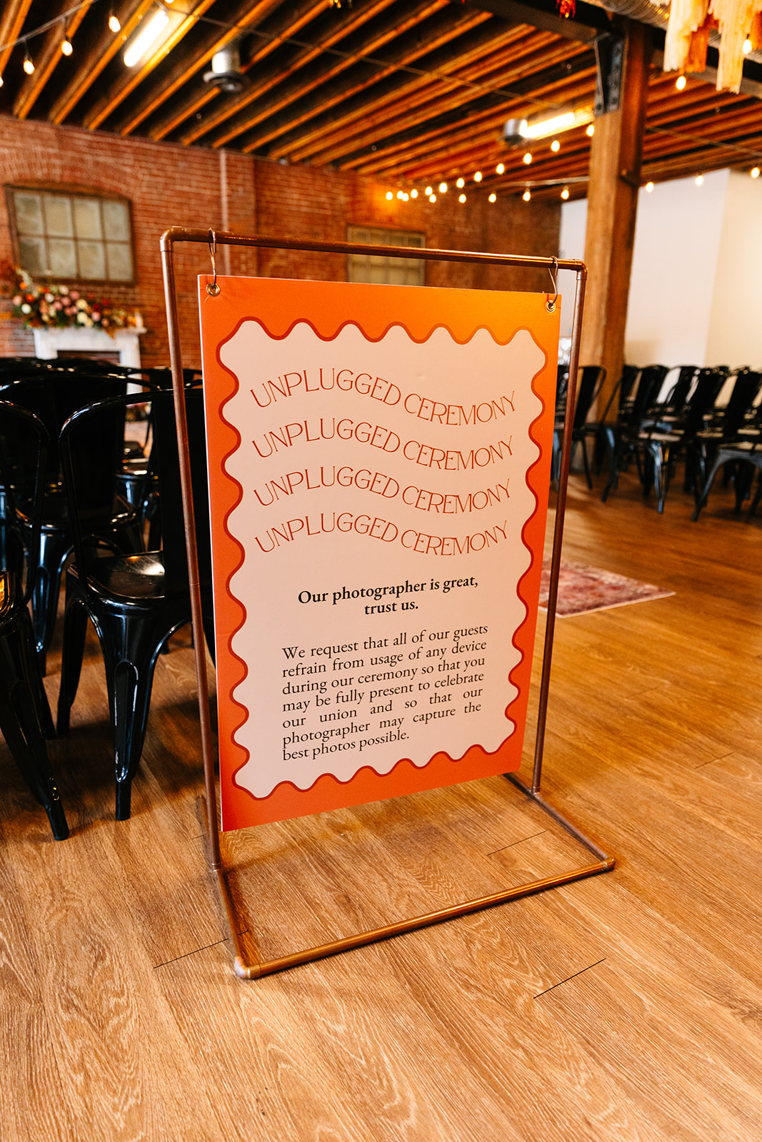 If you decide on an unplugged ceremony, include a note in your program or have your officiant kindly announce it before the ceremony begins. A simple reminder goes a long way in helping everyone be present and respectful.