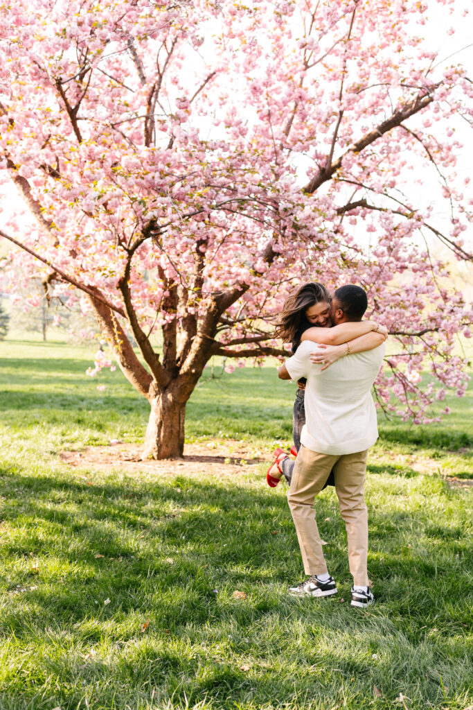 We started the session with a casual walk through the park so Molly wouldn’t suspect a thing. They laughed, held hands, and soaked in the warm spring air. The sun filtered softly through the trees, giving us the dreamiest glow. Molly had no idea what was coming—and her happiness radiates in every single photograph.