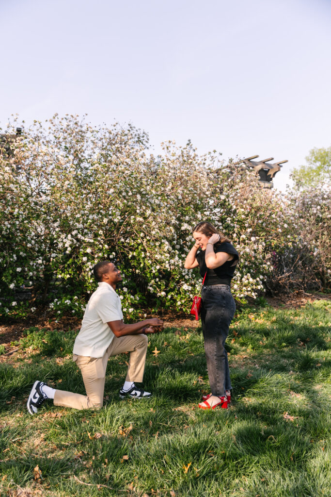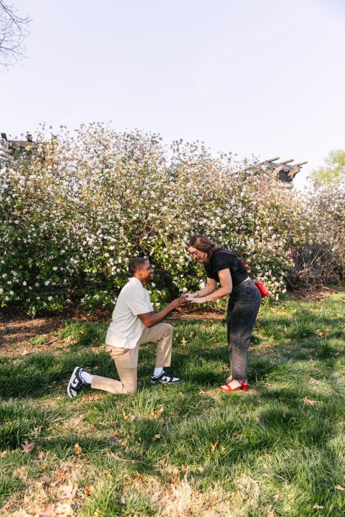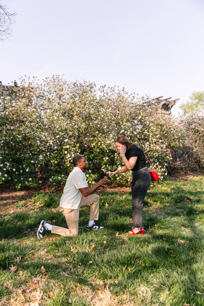 Spring in Kansas City is pure magic, and Molly and Jordan’s romantic Loose Park proposal was a the perfect spring afternoon! The sunshine, the blooming trees, the soft afternoon breeze—everything aligned perfectly for the sweetest “yes!” surrounded by fresh blossoms and golden light. Loose Park is always beautiful, but spring transforms it into something extraordinary. The cherry blossoms explode with color, the paths feel peaceful and intimate, and every corner becomes a picture-perfect backdrop. It’s no wonder Jordan chose this spot for such an important moment.