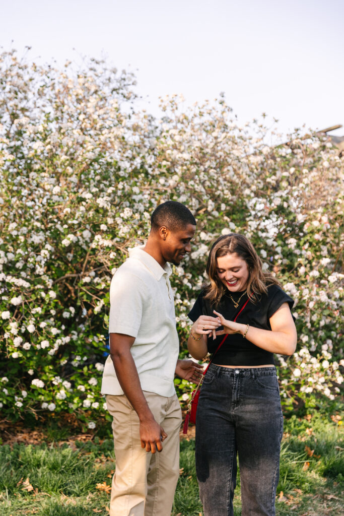 Jordan chose a stunning ring that sparkled in the afternoon sun, and we took a few moments to soak in that joy. The ring nestled on a pink spring blossom? Absolute perfection.