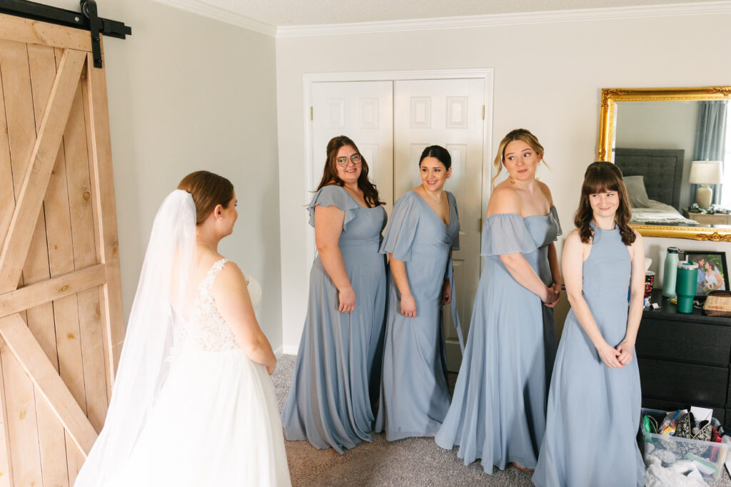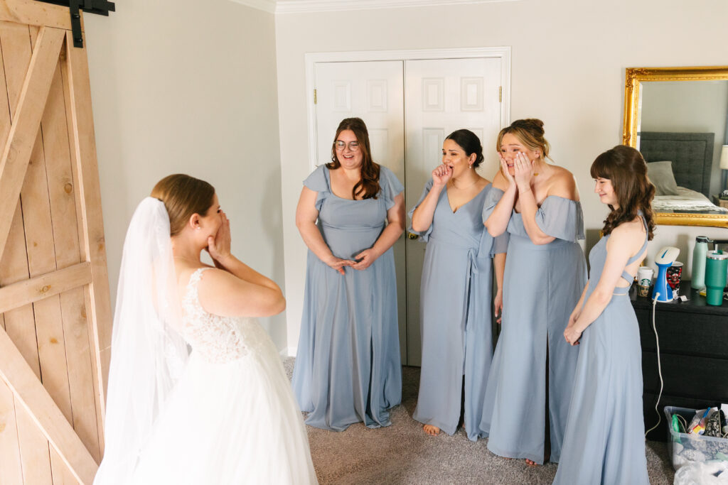 One of my favorite wedding day moments is a first look with your bridesmaids. It’s fun, emotional, and full of the kind of reactions you’ll want to remember forever. Your bridesmaids have been with you through so many parts of life — college years, late-night conversations, planning sessions, and everything in between — so letting them share in the moment you reveal your final bridal look is truly special.
