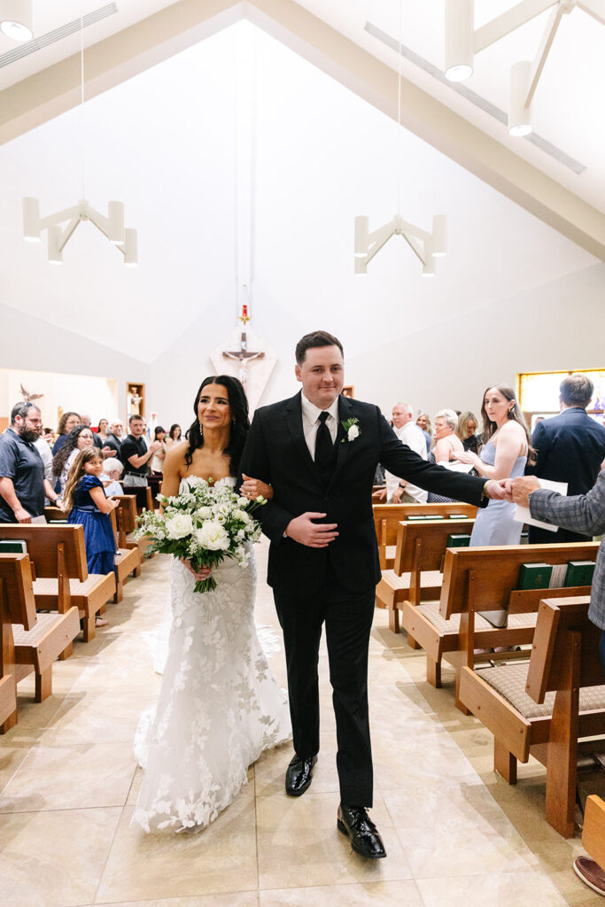 For Amy, it hit her the moment she walked down the aisle. She saw all their guests at once, and her eyes instantly filled with tears. For André, the moment felt real when they stepped out of the church as husband and wife. Their guests lined the exit and cheered as they walked out together.