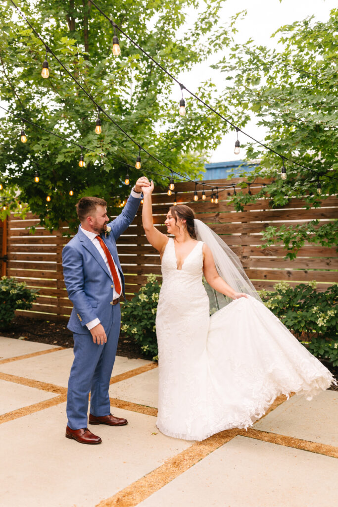 Amy surprised André during their first look with a custom painting by Steven Dragan. The artwork showed them standing in front of The Hotel Kansas City in their wedding attire — a moment that hadn’t even happened yet. It was thoughtful, beautiful, and incredibly unique.