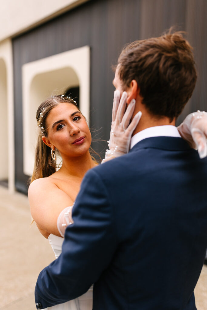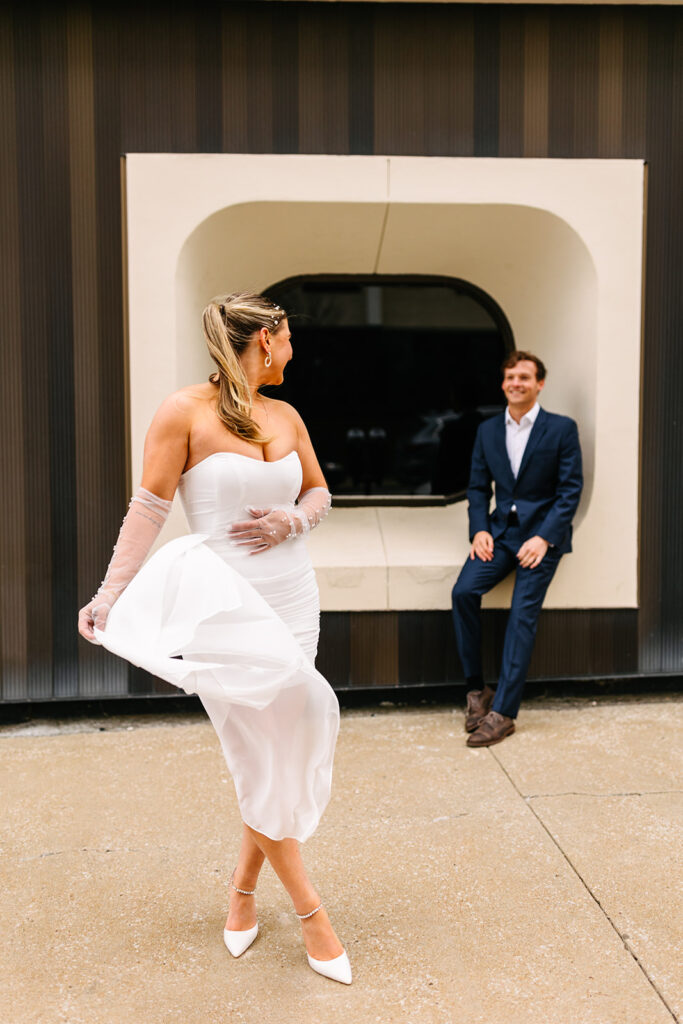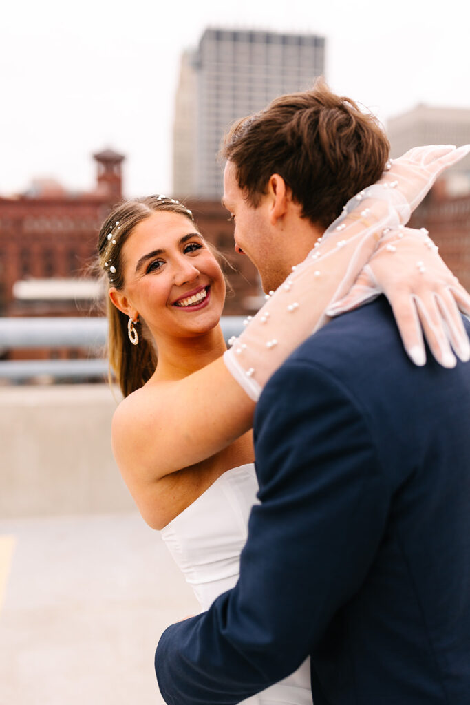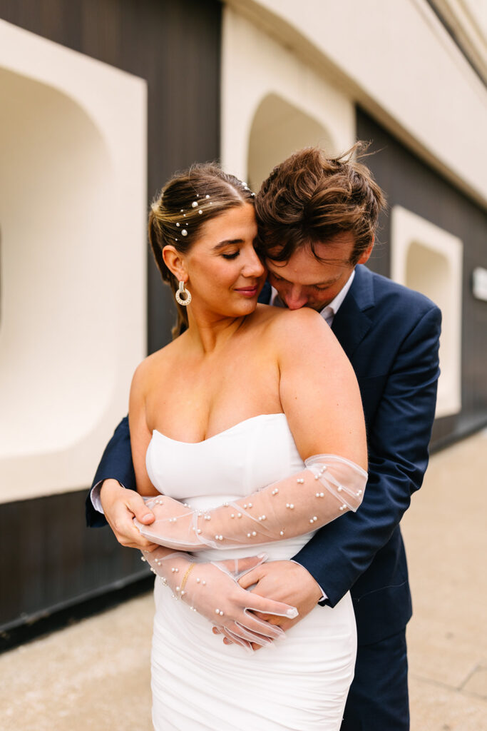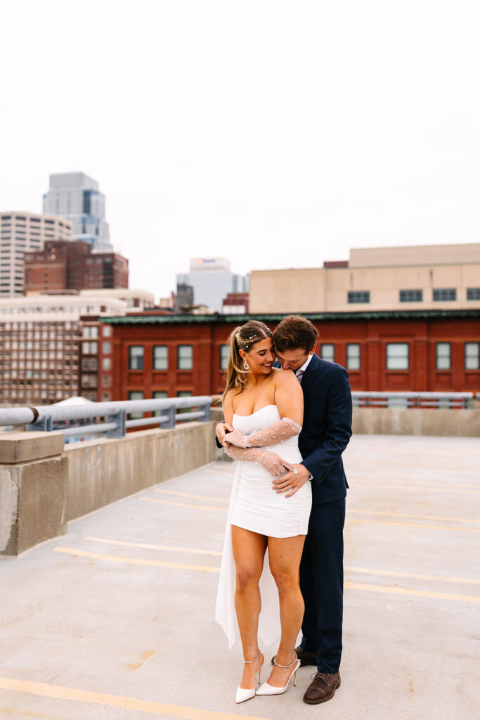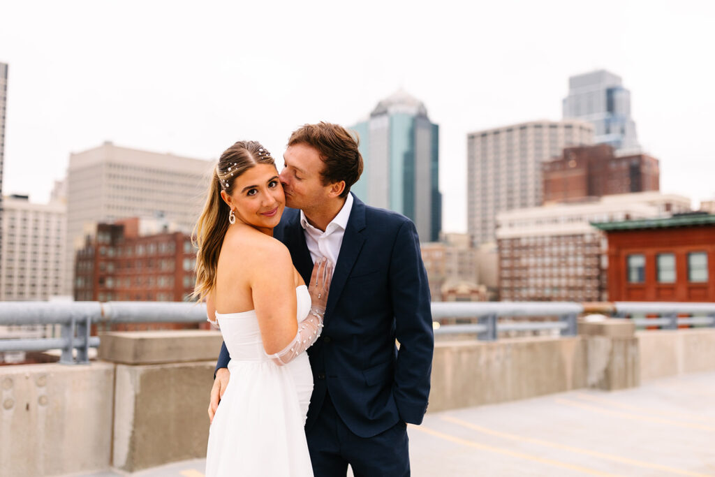 The Hotel Kansas City was the perfect fit for their classic style. They spent the morning in the king lofted suite, which gave them space to get ready and relax. The hotel team left a handwritten note and a bottle of sparkling rosé, which made the morning even sweeter.