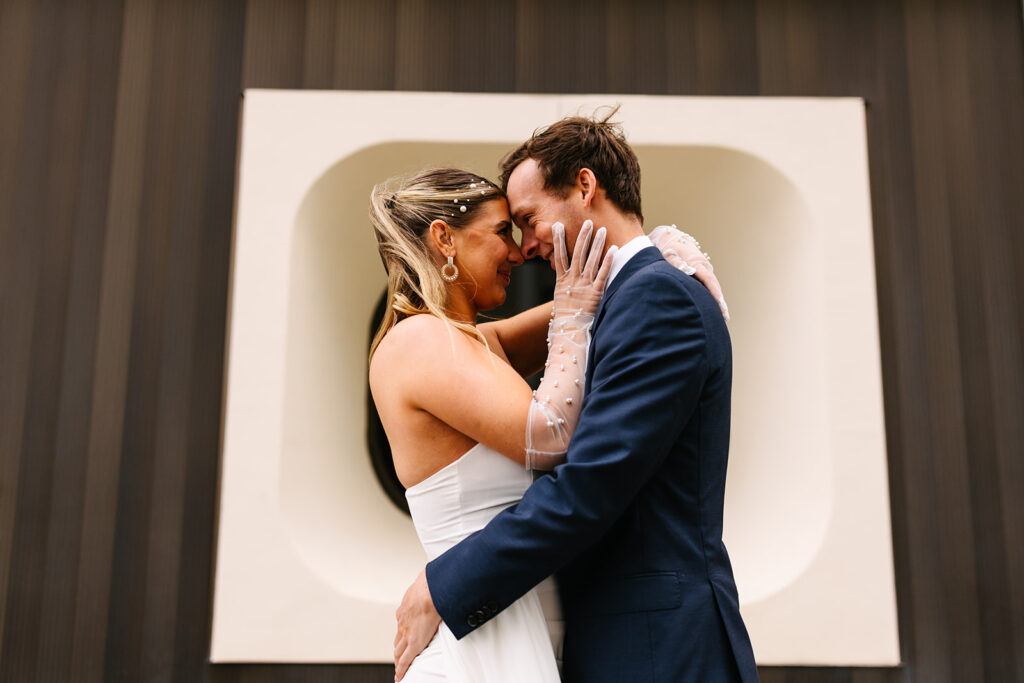 The Brimm is such a gem of a venue—bright, minimal, and designed to let meaningful moments shine. Danielle and Sam’s ceremony took place inside the stunning white chapel, where natural light poured through the windows and created the softest, dreamiest glow around them.