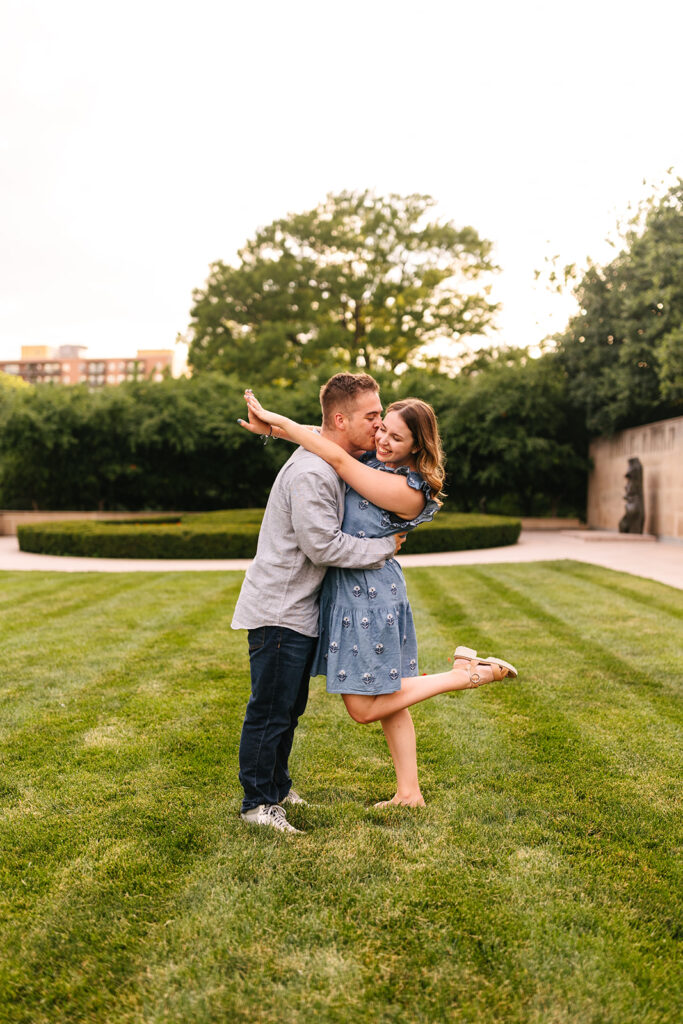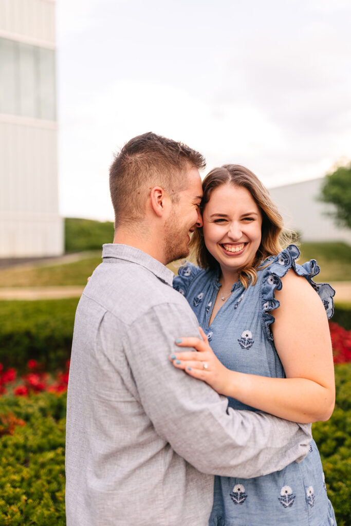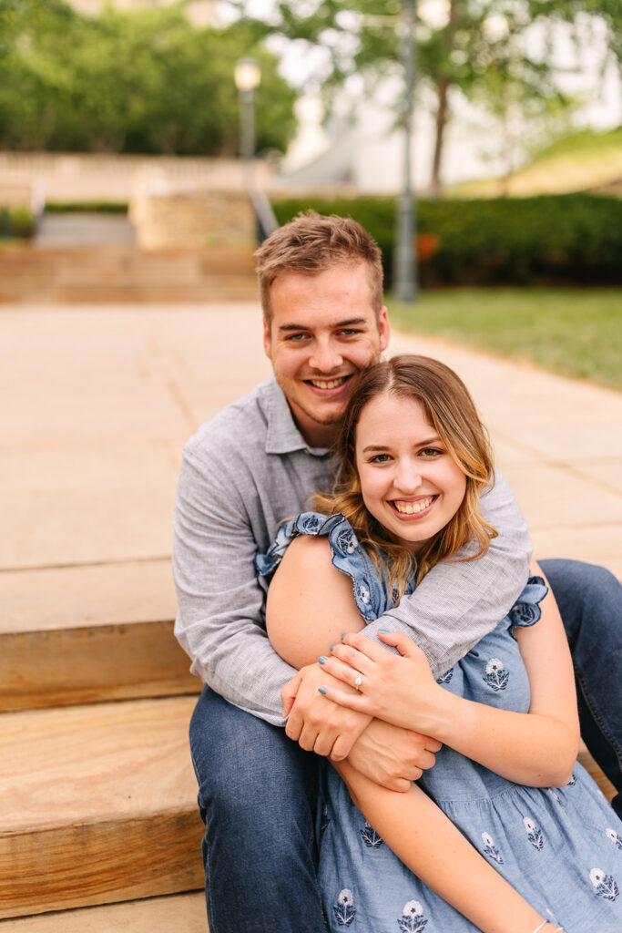After the big moment, we wandered through Loose Park—soaked in sunlight, surrounded by cherry blossoms and fresh greenery. Molly and Jordan slipped so effortlessly into pure, happy love. They cuddled under the blooming branches, danced along the path, and shared sweet glances that made the entire session feel like something straight out of a movie.