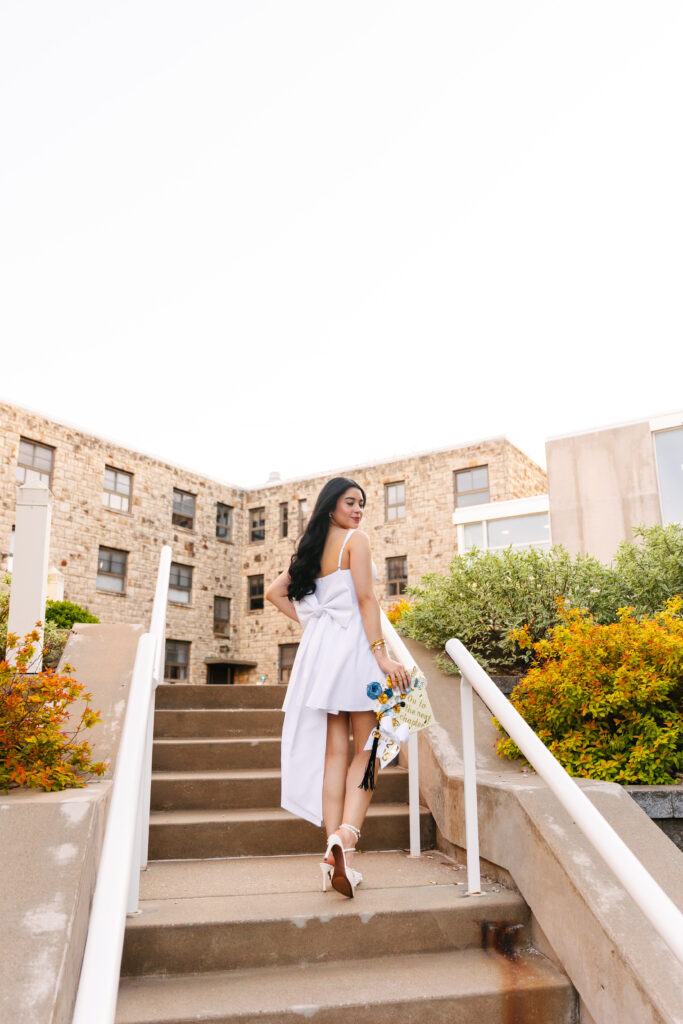 Brooke showed up in the sweetest white dress and her cap and gown, ready to celebrate all the hard work that brought her to this moment. She laughed through the entire session, and honestly, her brightness made everything around her even prettier.