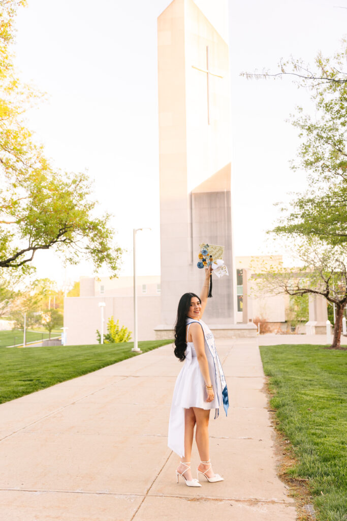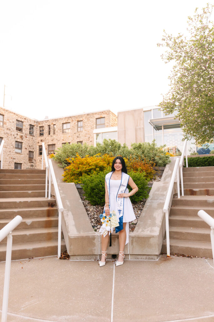 Katherine’s Rockhurst University graduation photos were the perfect way to celebrate such an incredible milestone! She recently earned her degree in Biological Science, and her session was filled with bright sunshine, elegance, and excitement for the next chapter of her life.