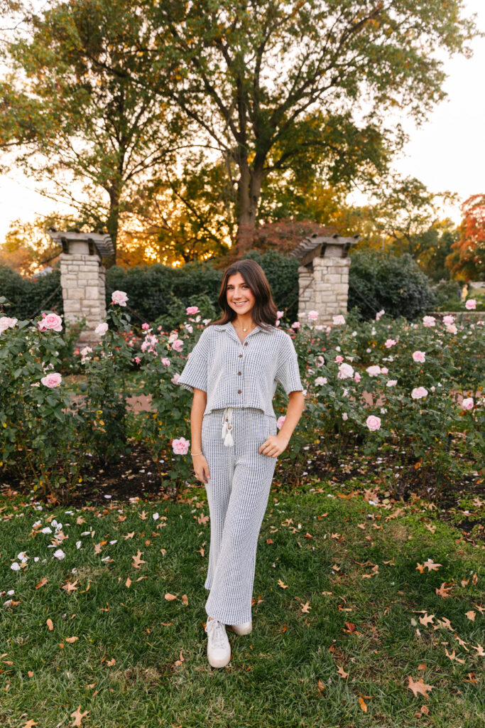 We spent the afternoon wandering around Rockhurst’s beautiful campus, stopping at all of Raegan’s favorite spots. She knew exactly where she wanted to go, which made the session feel so personal and meaningful. From charming brick pathways to the heart of campus, every location held special memories.