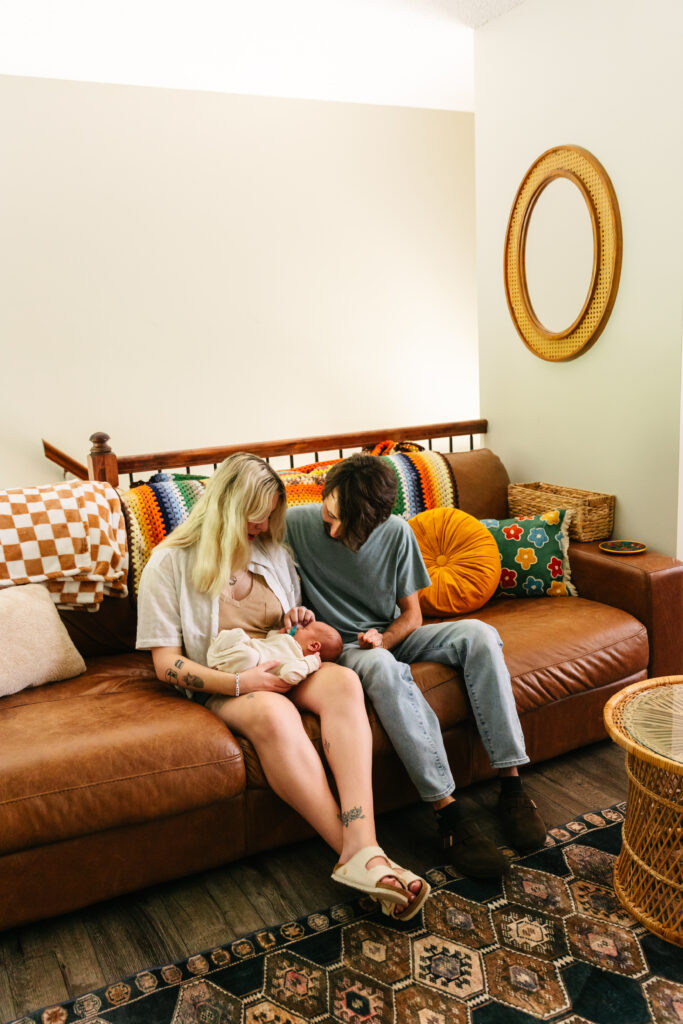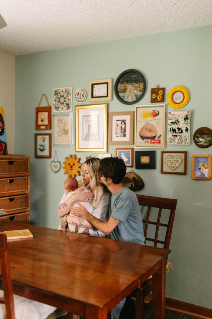 Mackenzie and Ian’s home feels like a reflection of who they are — creative, warm, and a little bit quirky in the best way. From the crochet blankets to the vintage wall art, every corner had something that made me smile. It’s always such a treat when clients choose to have their newborn session at home. There’s something about being in your own space that makes the photographs feel so natural and real.