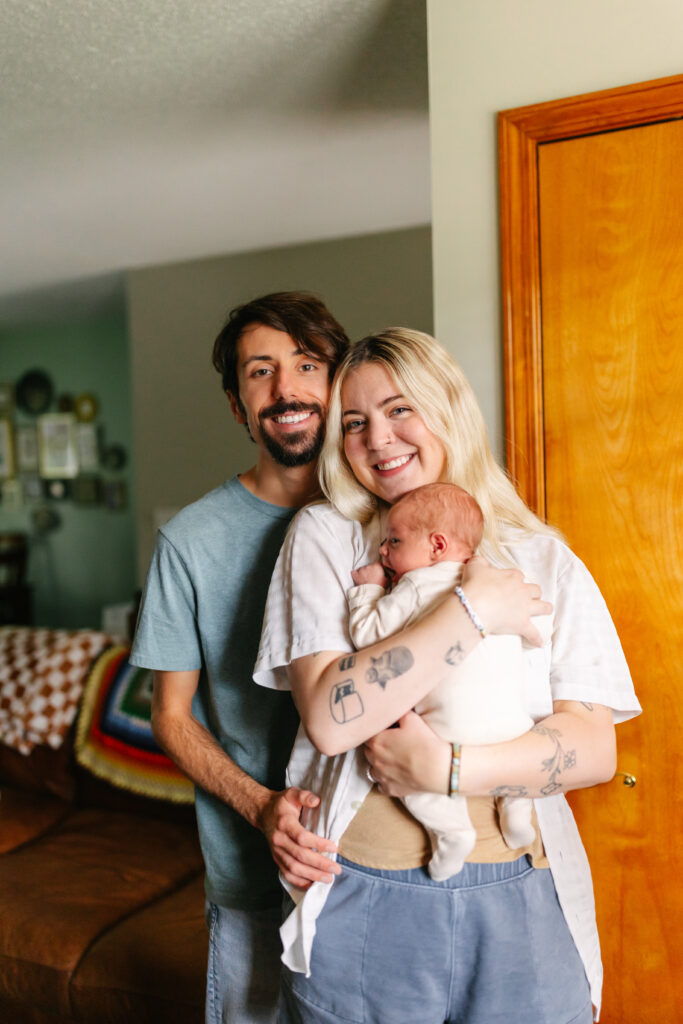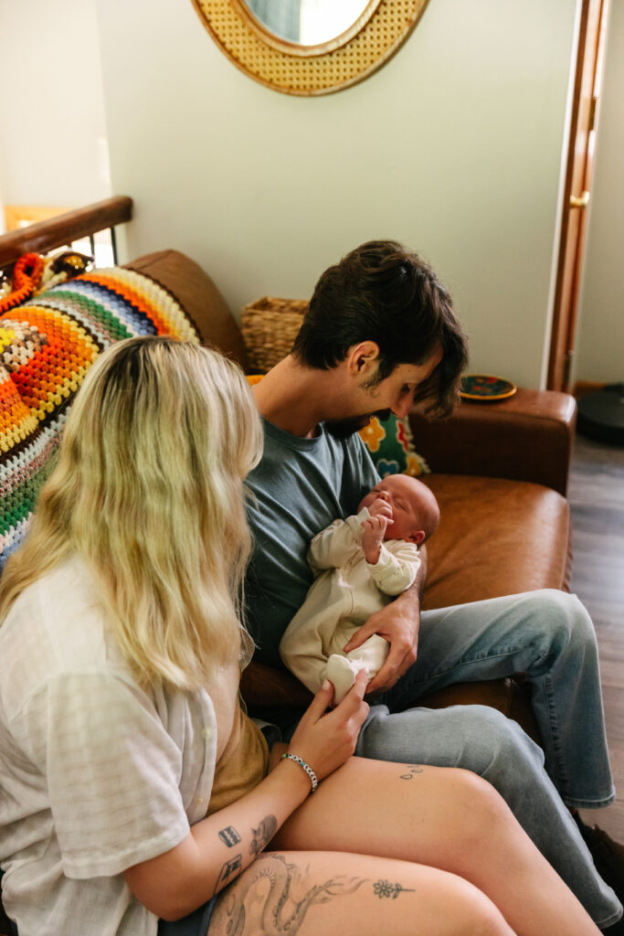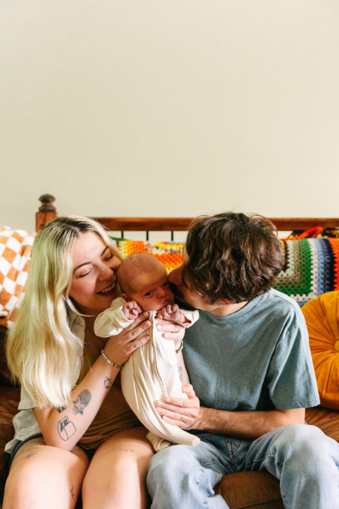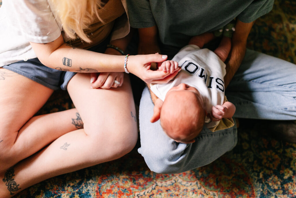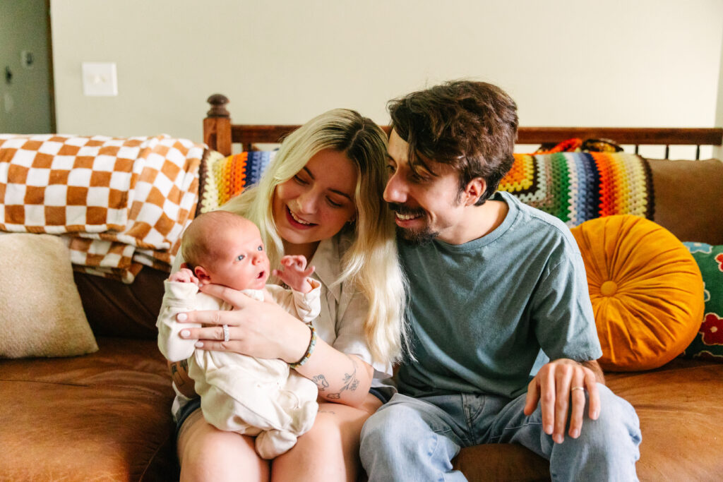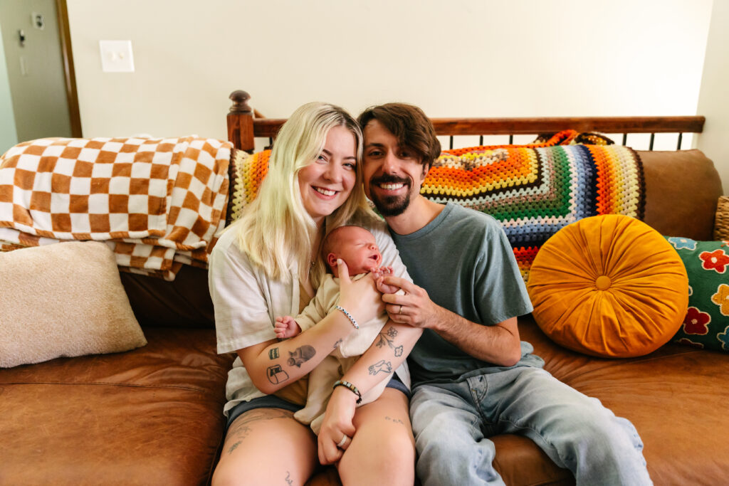I can’t tell you how special this session was! I’ve photographed Mackenzie and Ian before — I even captured their wedding — so getting to meet baby Simon and see them as parents was the best kind of full-circle moment. Their in-home newborn session in Kansas City was cozy, colorful, and perfectly them.