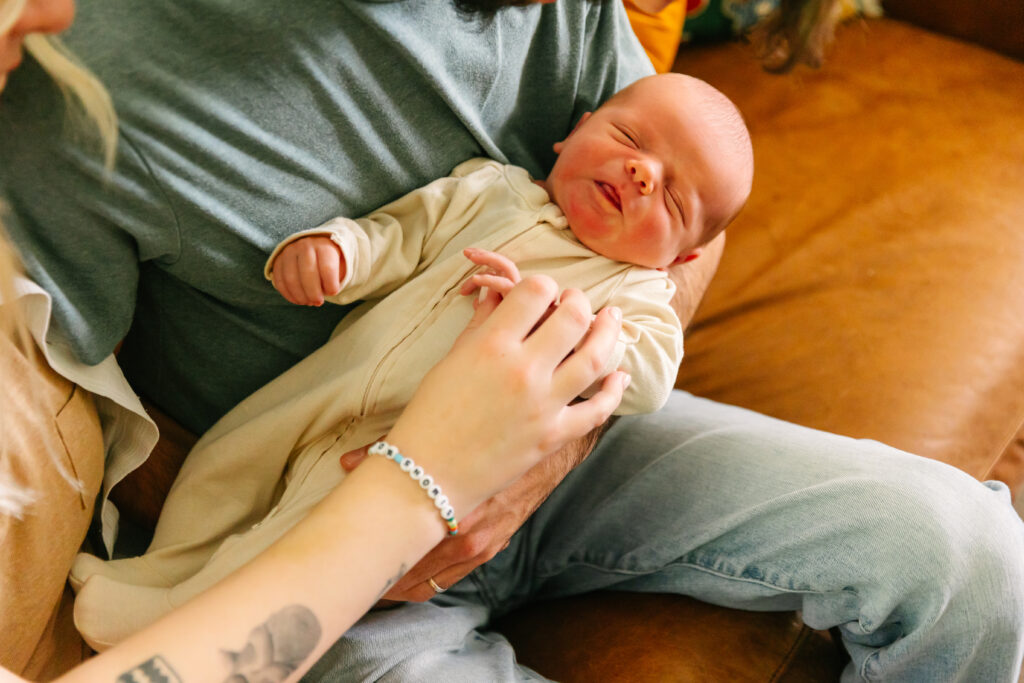 And then there’s Simon — the star of the show! This sweet boy already has the most expressive little face. He was so calm during the session, taking in the world with those curious eyes. Mackenzie and Ian were naturals, relaxed and happy as they cuddled him on the couch and in his adorable nursery.