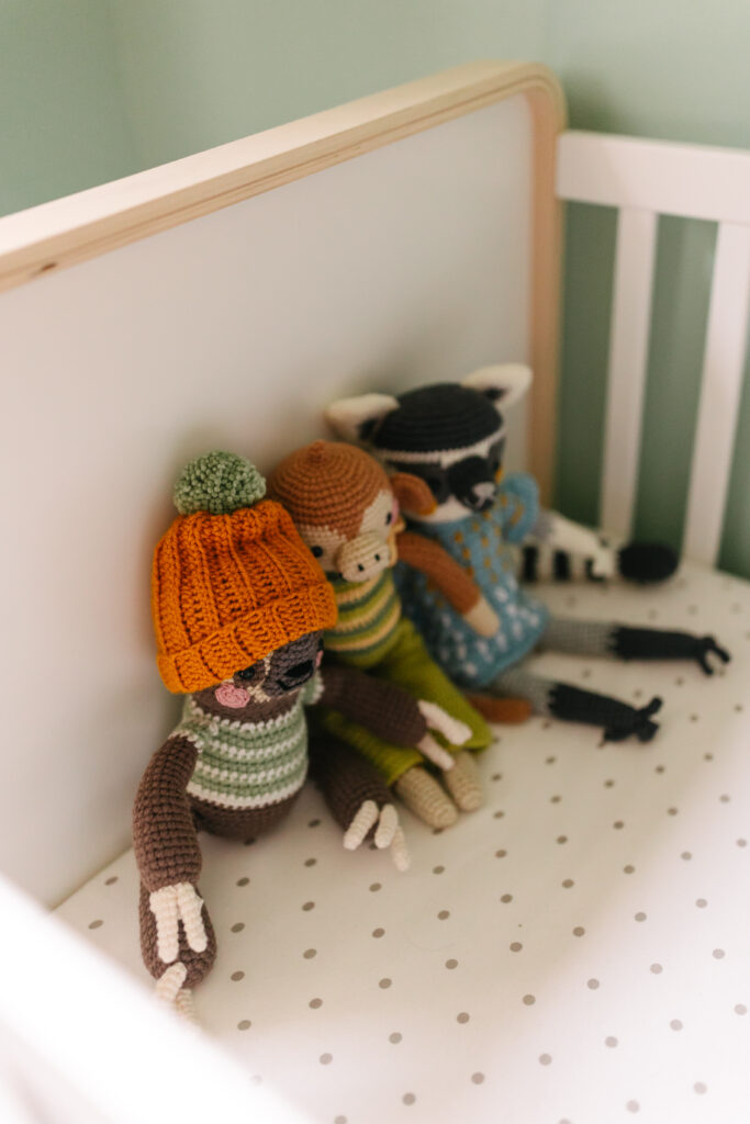 Just a few weeks later, I joined them again—this time in the comfort of their home—for baby Isaac’s newborn session. Their cozy nursery was full of thoughtful details, from a shelf of keepsakes to sweet ultrasound photographs and a plush bunny wearing a name tag that read “Hello, my name is Isaac.” It was such a heartfelt space, perfect for the newest member of the Thorsteinson family.