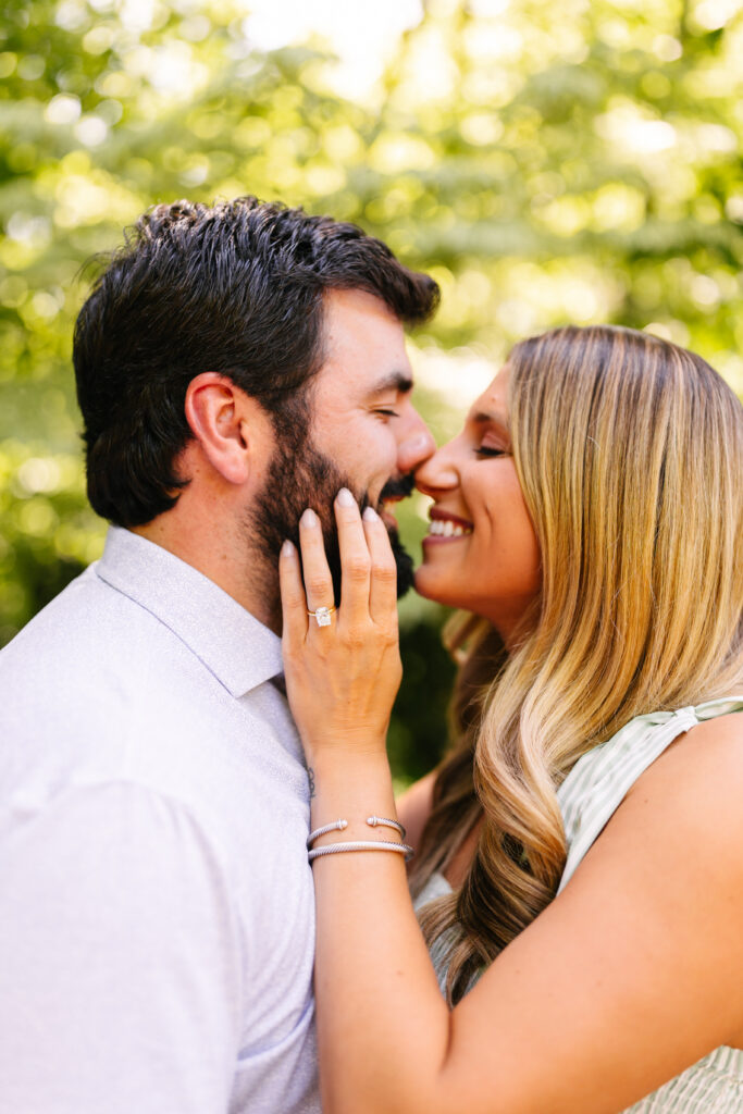 We started the session with a casual walk through the park so Molly wouldn’t suspect a thing. They laughed, held hands, and soaked in the warm spring air. The sun filtered softly through the trees, giving us the dreamiest glow. Molly had no idea what was coming—and her happiness radiates in every single photograph.