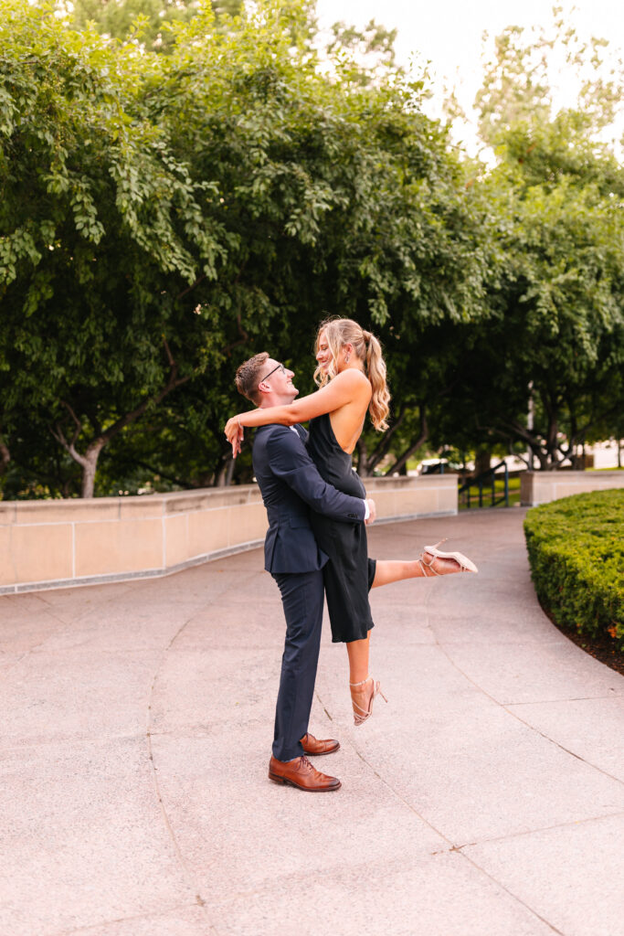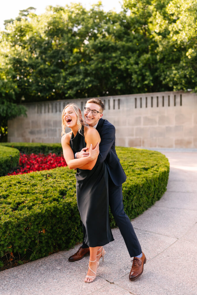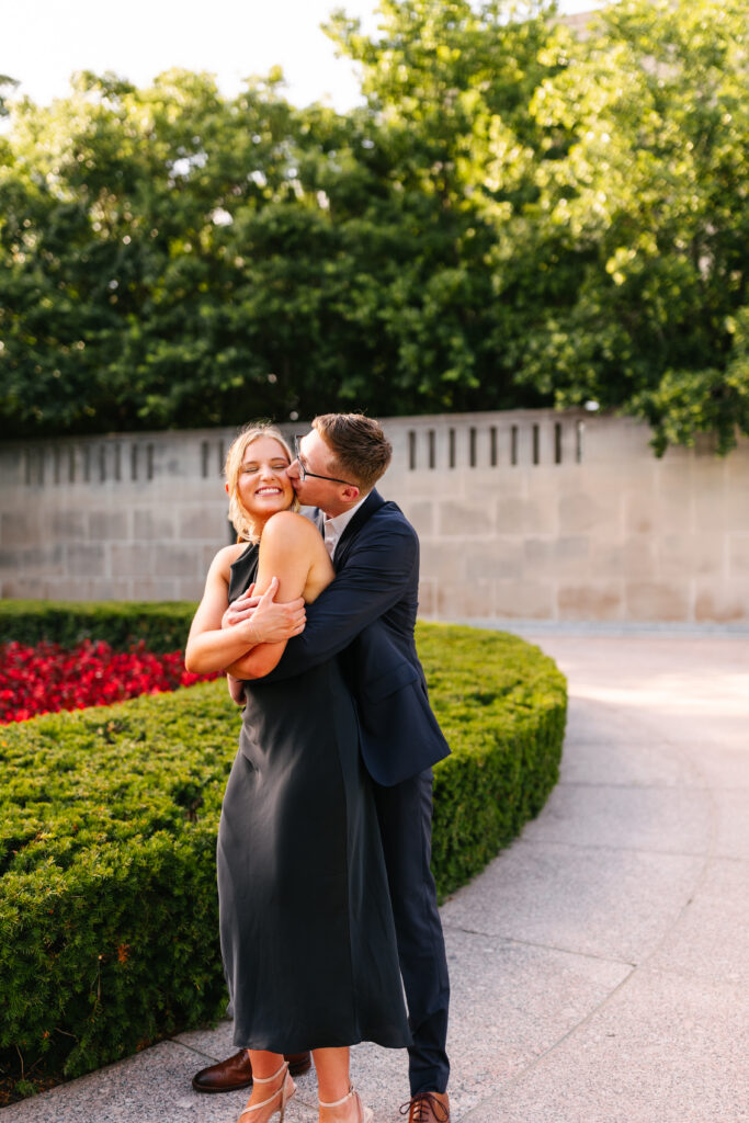 The Nelson-Atkins is one of the most iconic spots in Kansas City, and for good reason. The grand architecture, manicured hedges, tree-lined paths, and open lawn create a setting that feels both refined and romantic. When golden hour hits, everything glows.